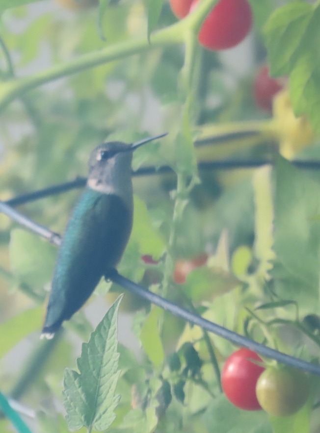Some bird photos from the last months. The hummingbirds are gone now but there was a lot of perching on the tomato cages in their last month.
